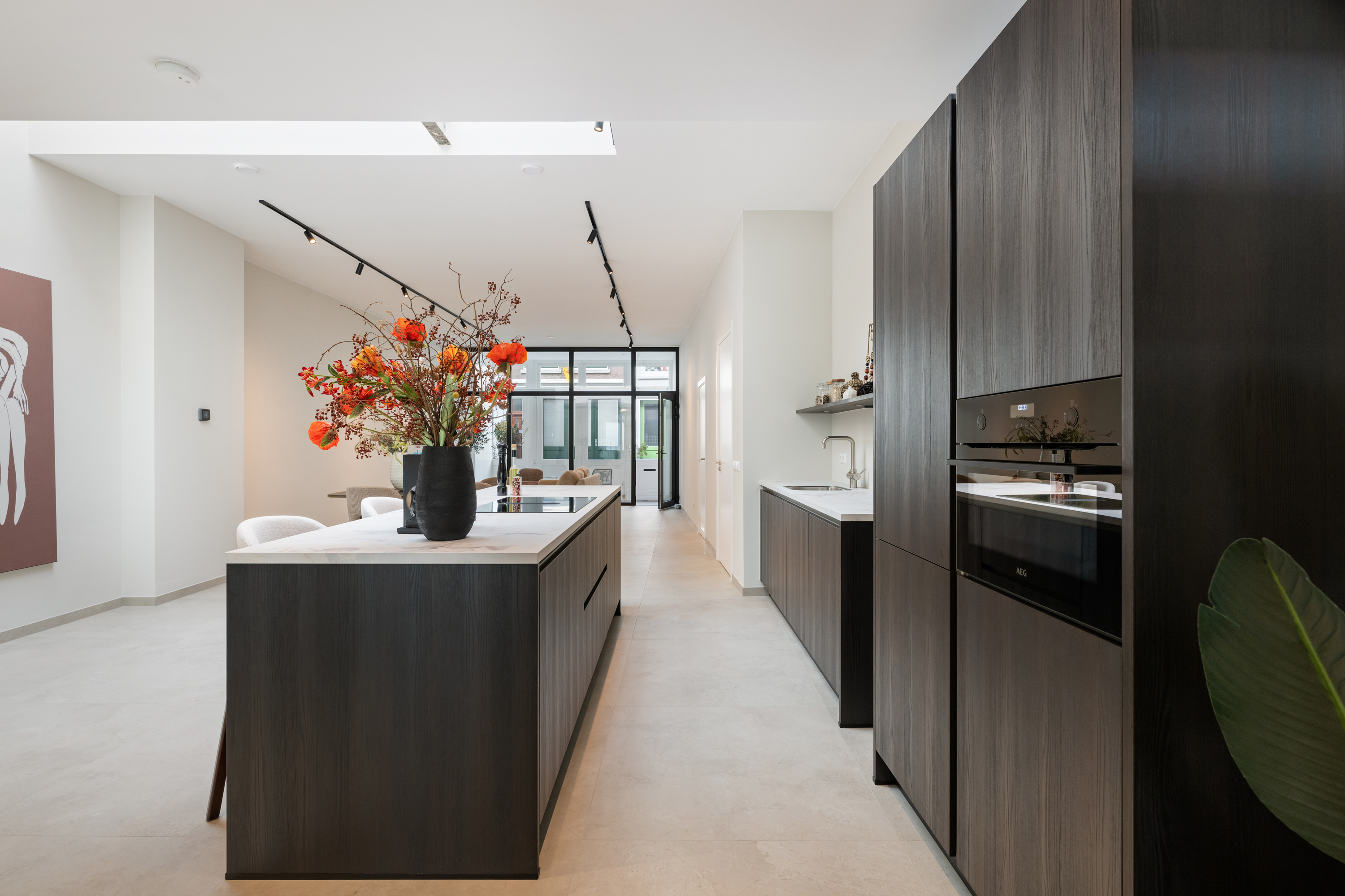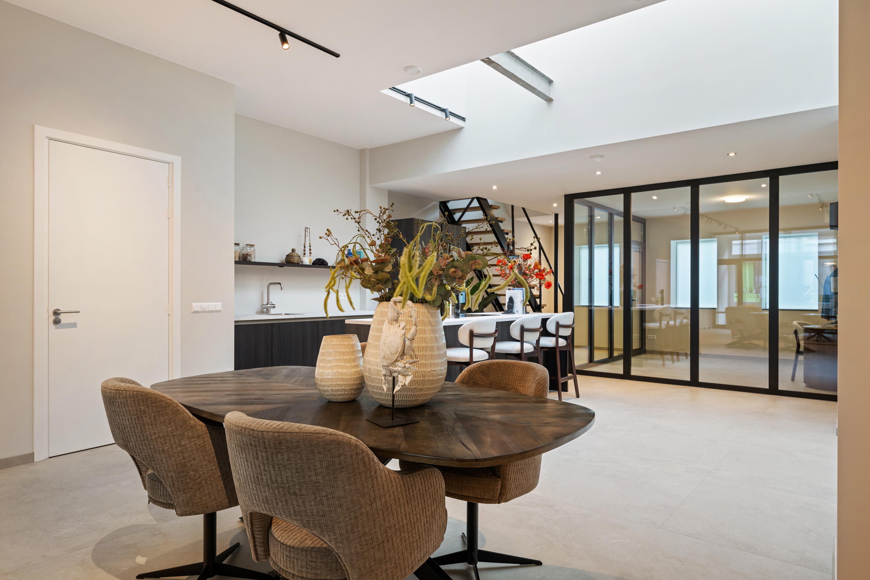 Alle buitenkozijnen, ramen en deuren zijn in 2025 opnieuw geschilderd. Kortom, dit huis is energiezuinig, comfortabel en volledig klaar om direct in te trekken. Binnen ervaar je een lichte en open sfeer. Je komt binnen via de loggia aan de voorzijde van het pand, een charmante entree met uitzicht op de rustige straat. Maar zodra je de deuren opent, verandert deze ruimte in een zonnige patio, een plek waar je heerlijk kunt zitten en het buitenleven naar binnen haalt. Via een glazen wand loopt het woon- en keukengedeelte vloeiend in elkaar over. De open keuken is volledig nieuw geplaatst in 2025 en van alle moderne gemakken voorzien, waardoor koken en wonen perfect samengaan. Op de begane grond is een slaap-/werkkamer aanwezig, evenals een toilet.