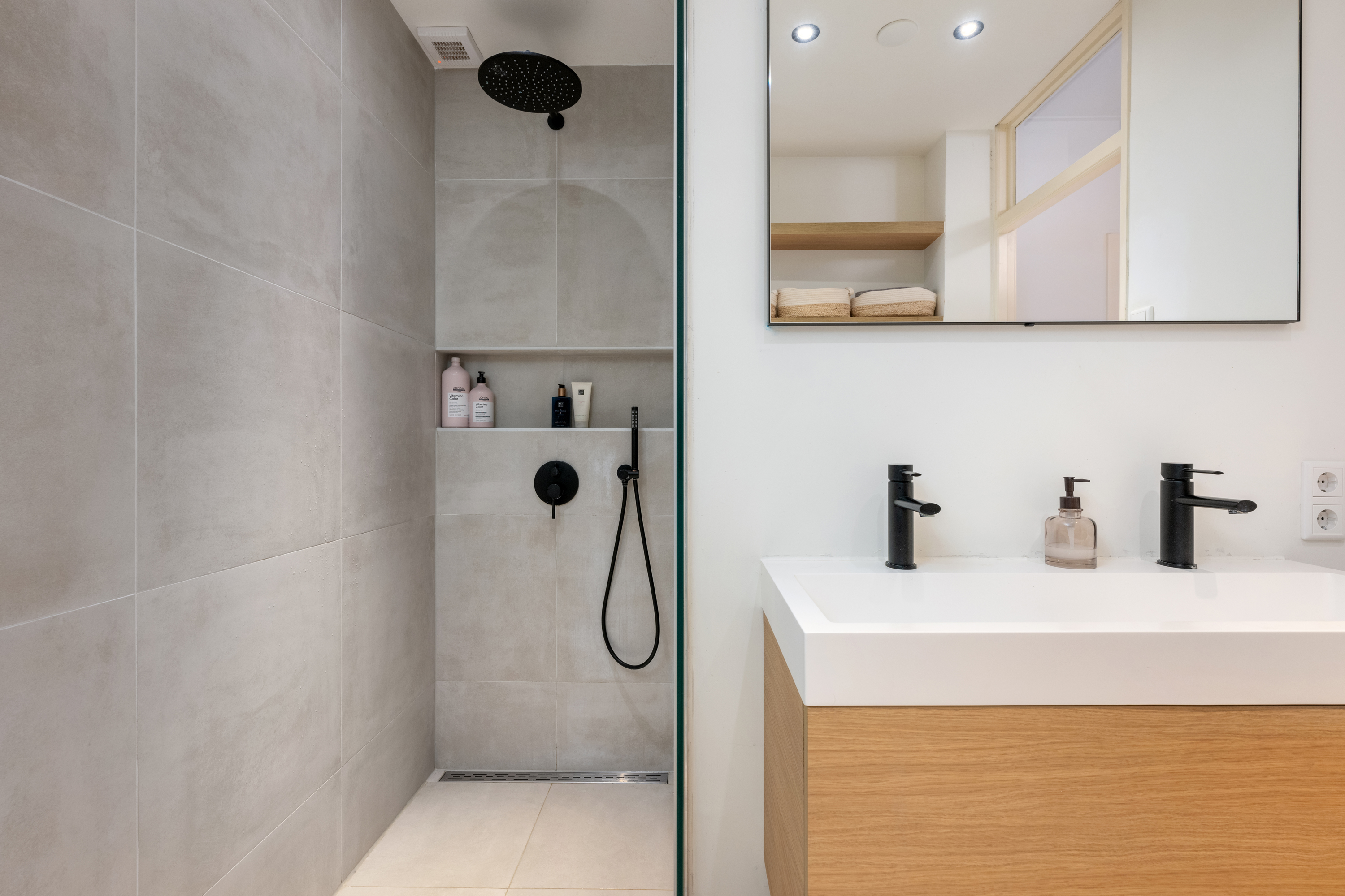 De moderne keuken is uitgerust met inbouwapparatuur en een royaal spoeleiland, de ideale plek voor een glas wijn met vrienden terwijl het diner op het fornuis staat. De verkopers zijn verliefd geworden op de openslaande deuren naar je brede terras/tuin. Dit is het verlengde van je woning, dit is de plek waar je kan lezen, een koffie kan drinken, kletsen met je vrienden. Door de diepe tuinen is het een hele rustige serene sfeer daar op de Nolensstraat. Vergeet niet dat je ook een prachtig zicht hebt op deze groene oase vanuit je huis.