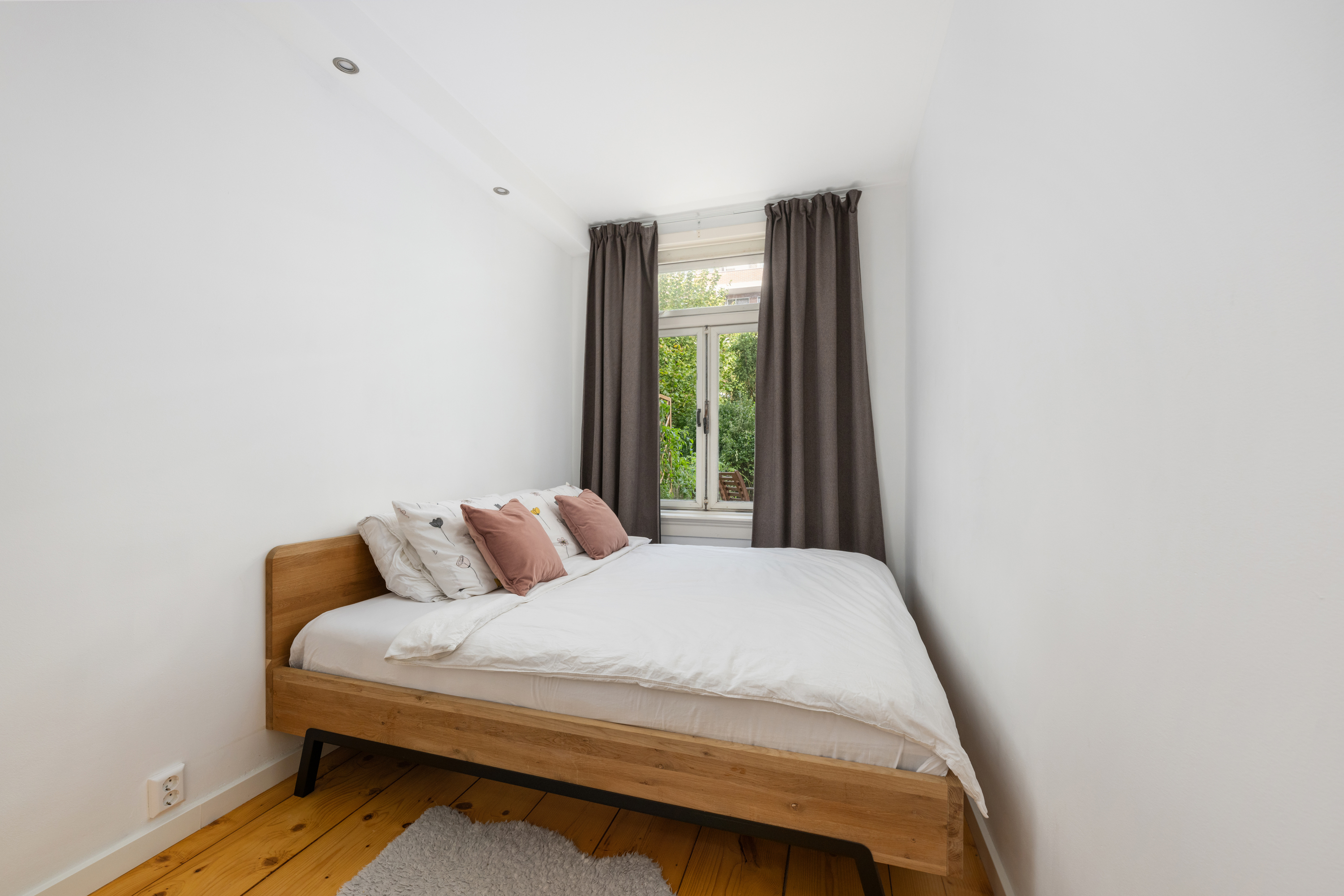 Ook vanuit de slaapkamer aan de achterzijde geniet je van het uitzicht op de tuin. Verder is er een separaat toilet en een stijlvolle badkamer met inloopdouche en dubbele wastafel. Deze zijn helemaal gerenoveerd, uitstekend uitgevoerd.
